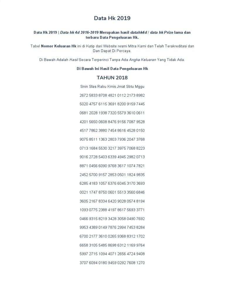 53 rows Dec 09 2020 Data Pengeluaran Togel HK 2019-2021 data hk 2021 keluaran togel. Tabel Data hk 6d 2019-2020 sampai 2021 Live Tabel Data Keluaran Hongkong 6d di Mulai dari Tahun 2010-2018-2019-2020 sd 2021 Lengkap dan Paling Update. Dengan Hasil Rekap Data Hk 6d 2021 dan Result Hk 4d 6d Tercepat Harian ini.